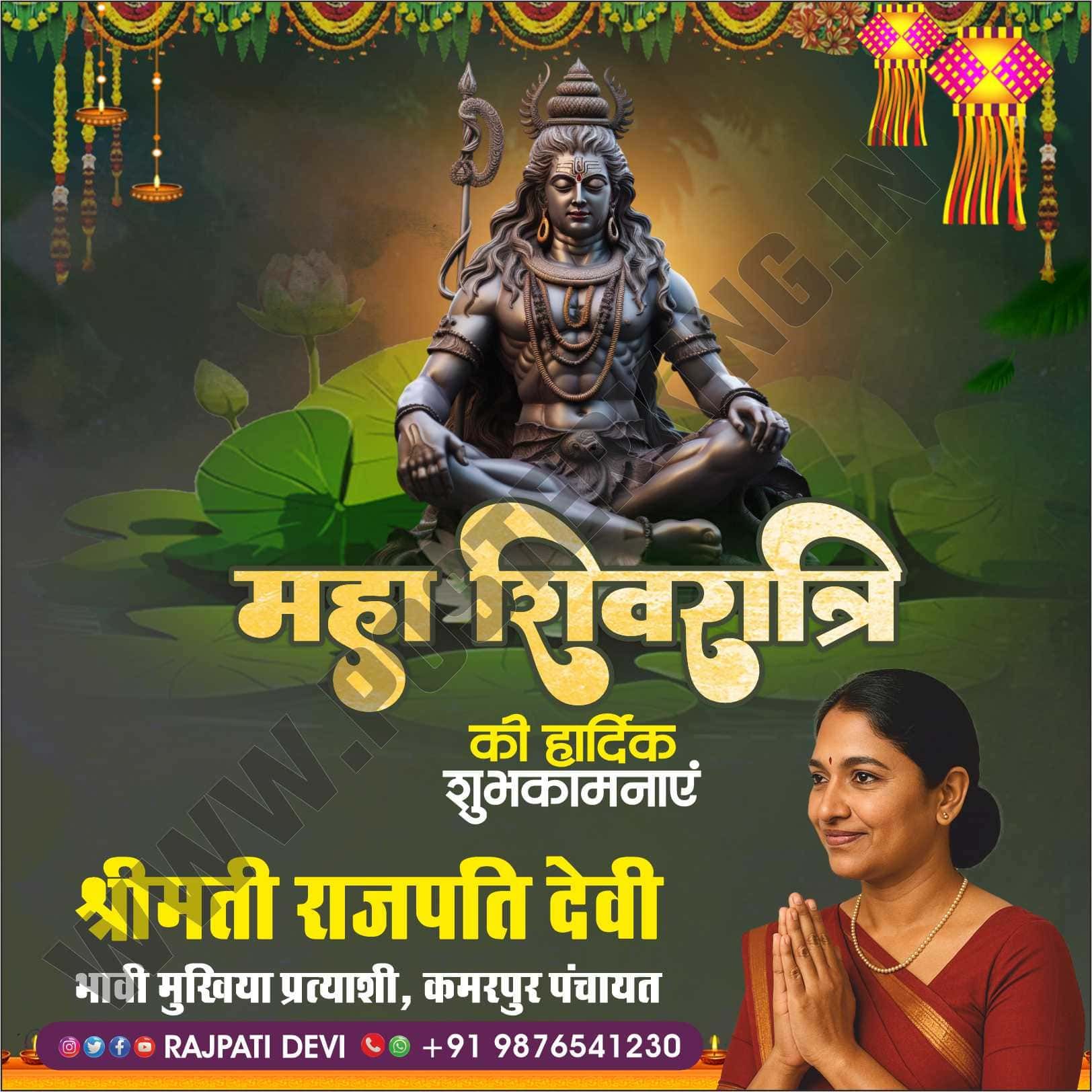 यह एक प्रीमियम महाशिवरात्रि शुभकामना बैनर है, उच्च-गुणवत्ता वाले CDR (CorelDraw) डिज़ाइन मिलते हैं। ये डिज़ाइन विशेष रूप से सार्वजनिक समितियों, राजनीतिक प्रचार और व्यक्तिगत बधाई संदेशों के लिए तैयार किए गए हैं।