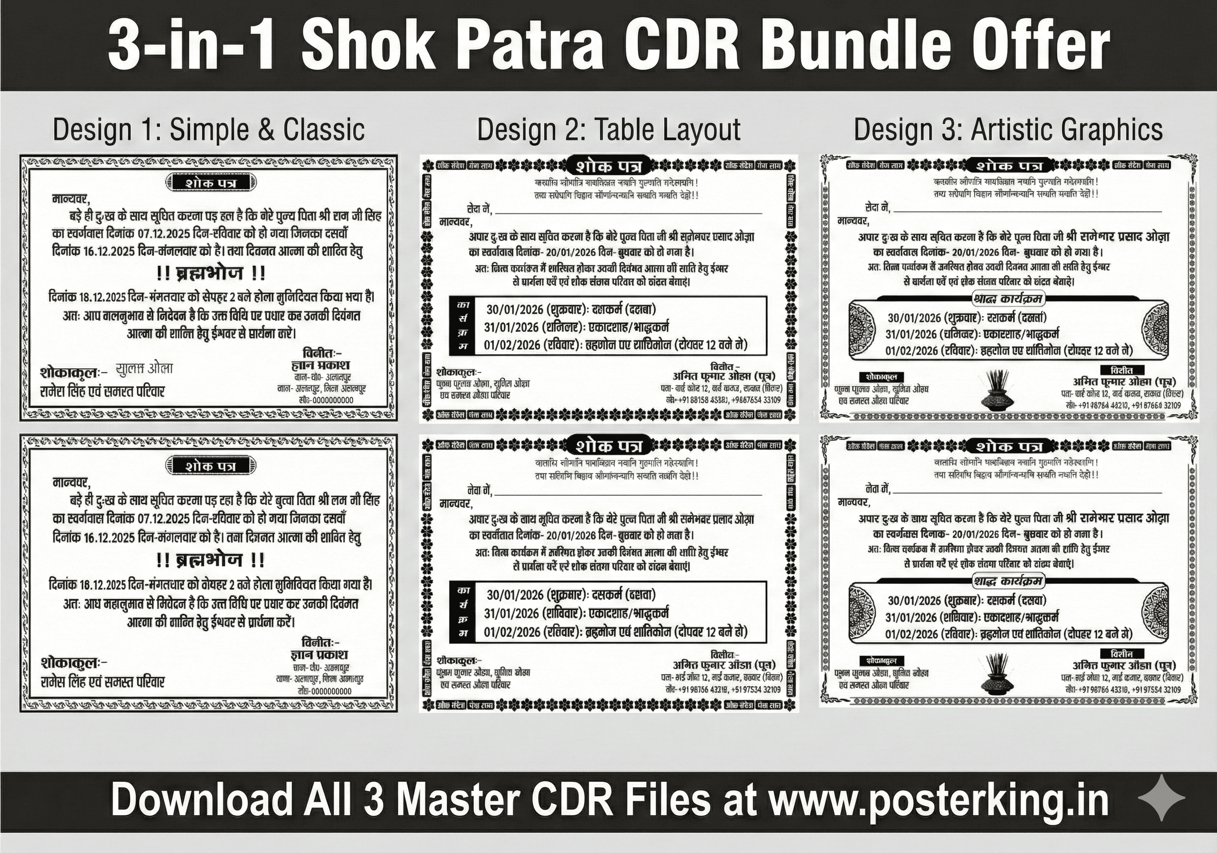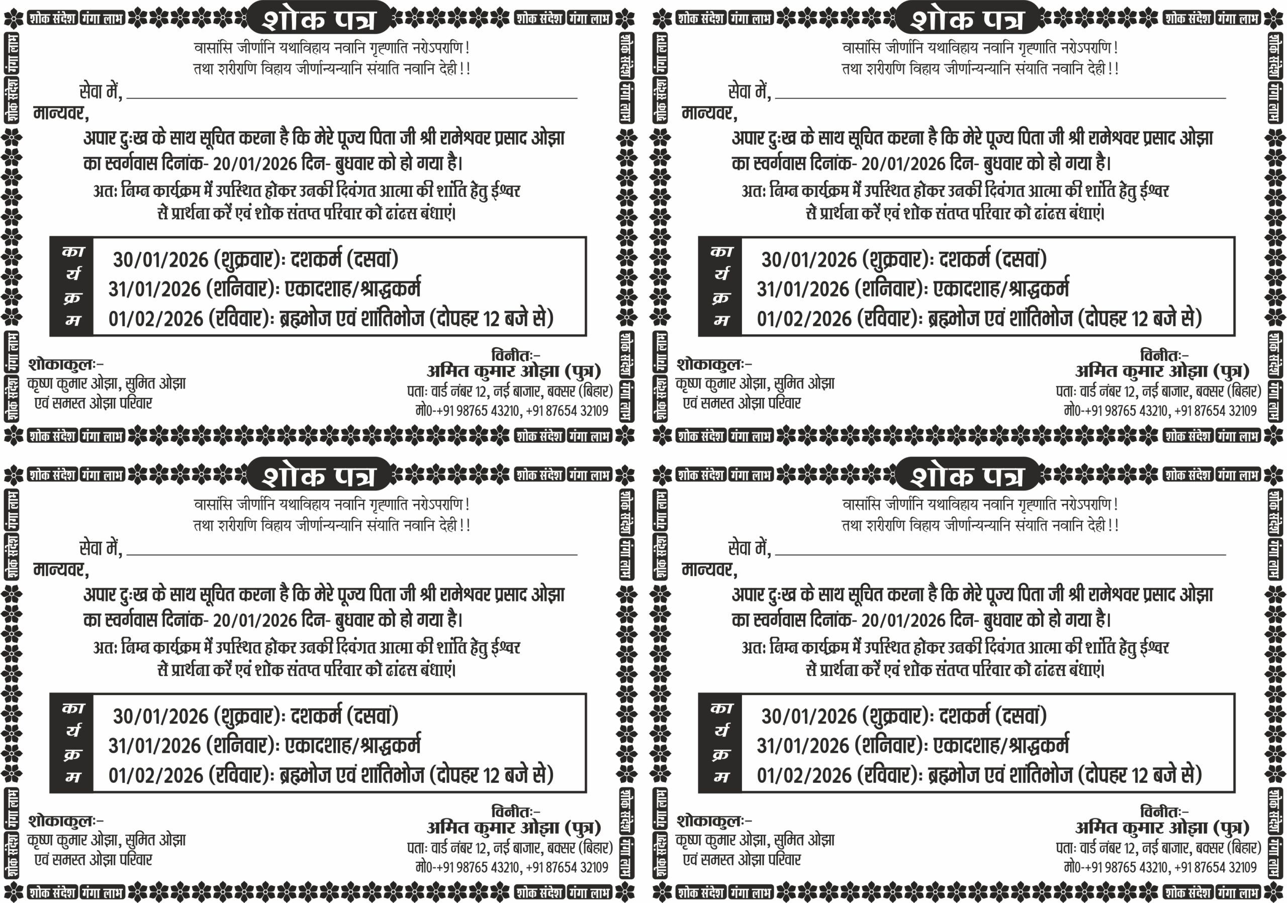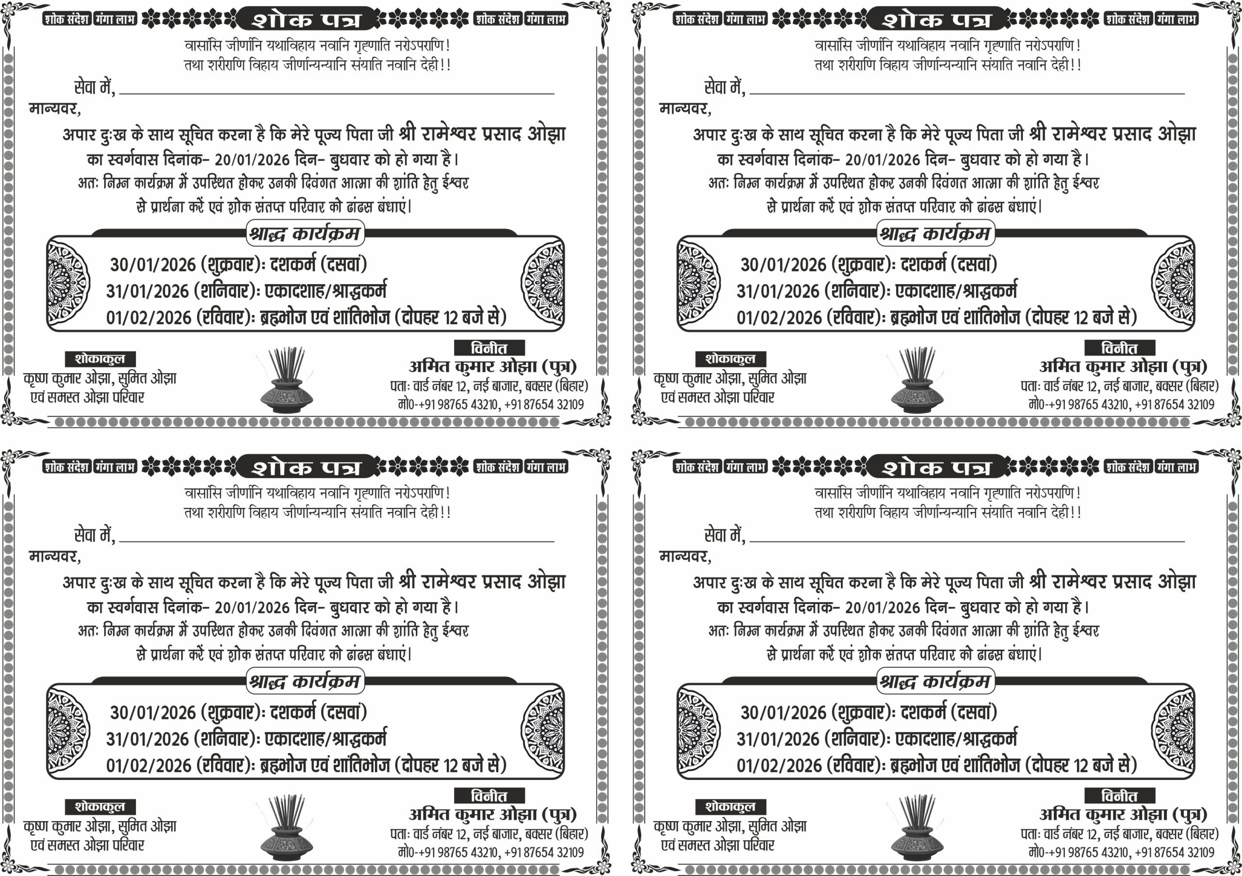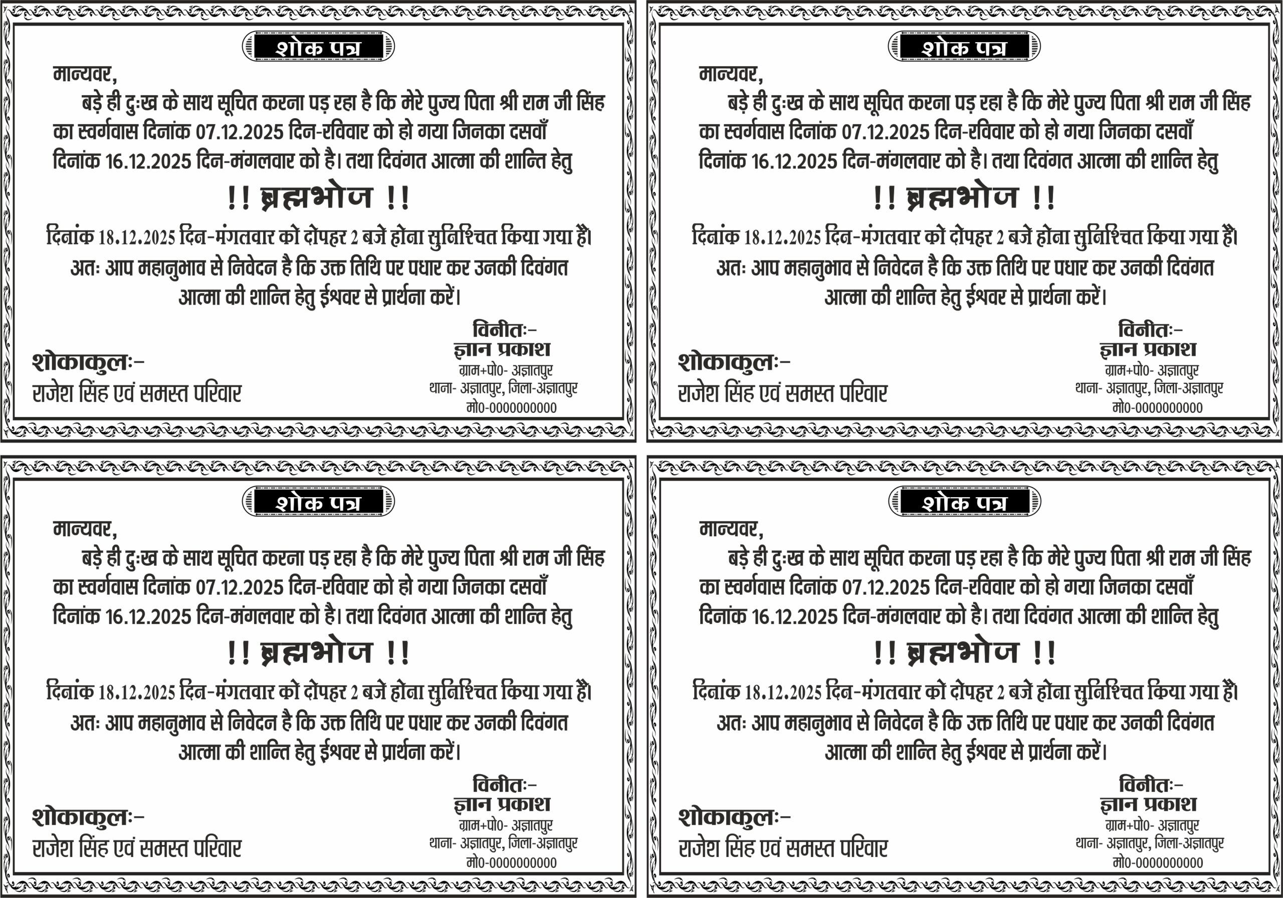 अब एक ही पैक में पाएं शोक पत्र के 3 अलग-अलग और प्रोफेशनल डिजाइन!