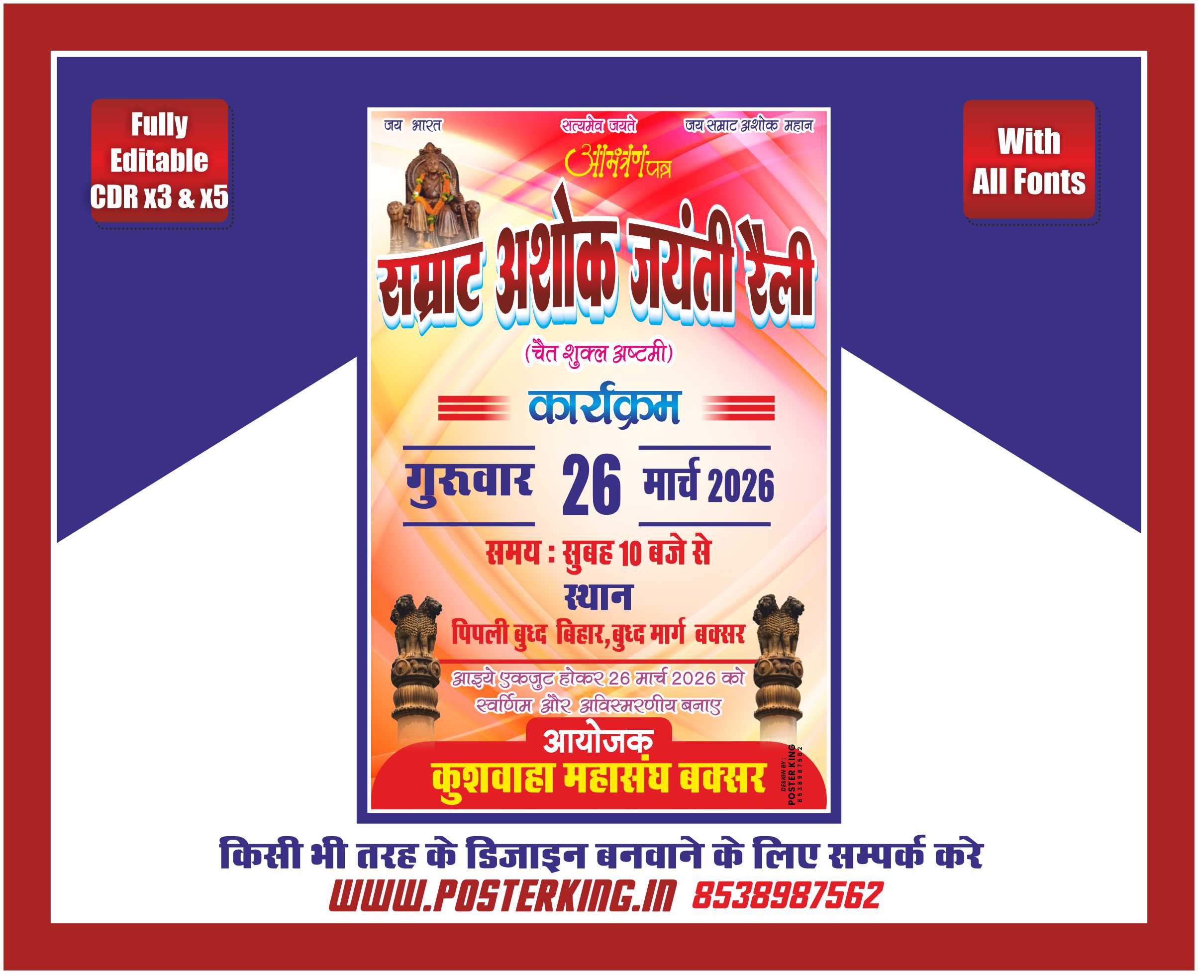सम्राट अशोक जयंती रैली आमंत्रण कार्ड: प्रीमियम कोरलड्रॉ (CDR) डिजाइन