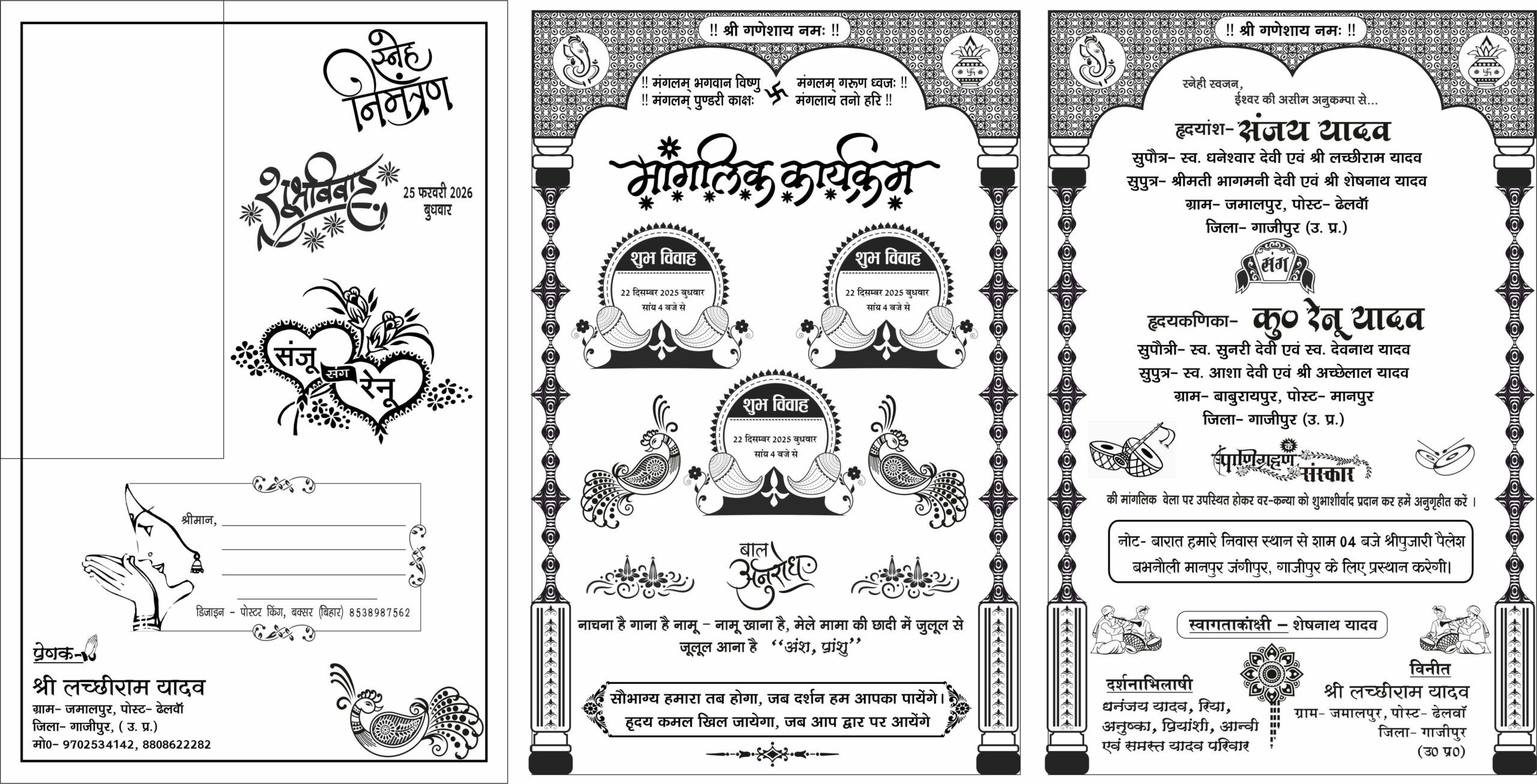 प्रेषक और स्वागतकर्ता: नीचे के हिस्से में परिवार के सदस्यों के नाम और संपर्क विवरण के लिए सुंदर लेआउट है।